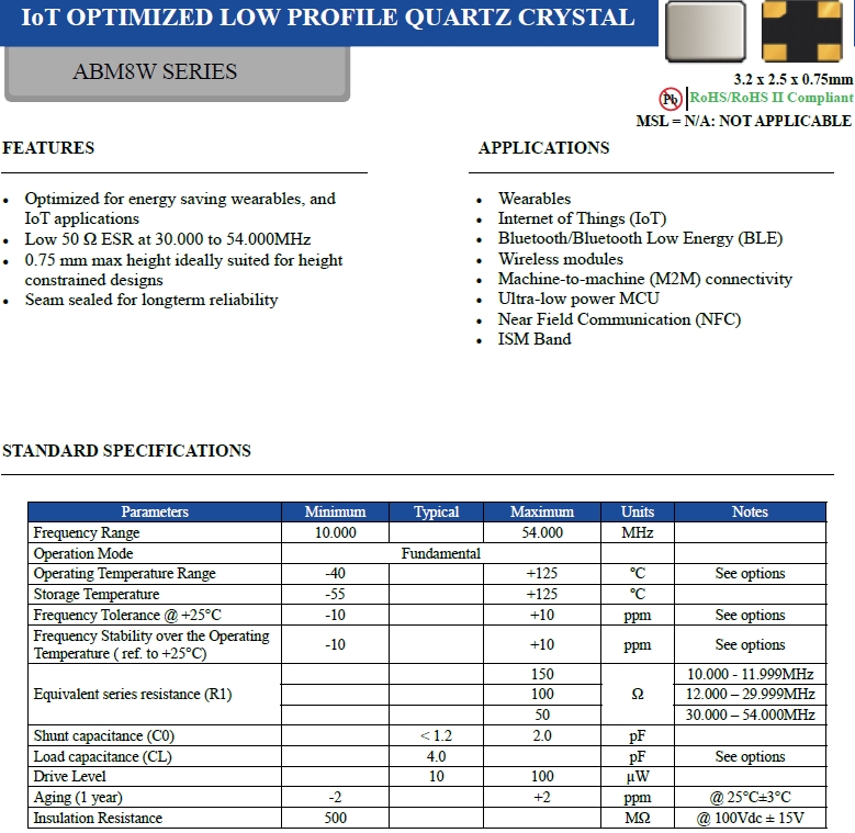 | Abracon晶振 | 單位 | ABM8W晶振 | 石英晶振基本條件 |