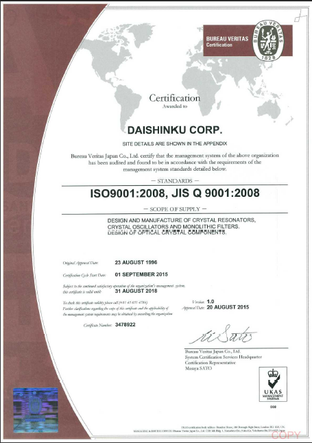 - [2019-08-29]日本電波晶體ISO9001系列質量認...