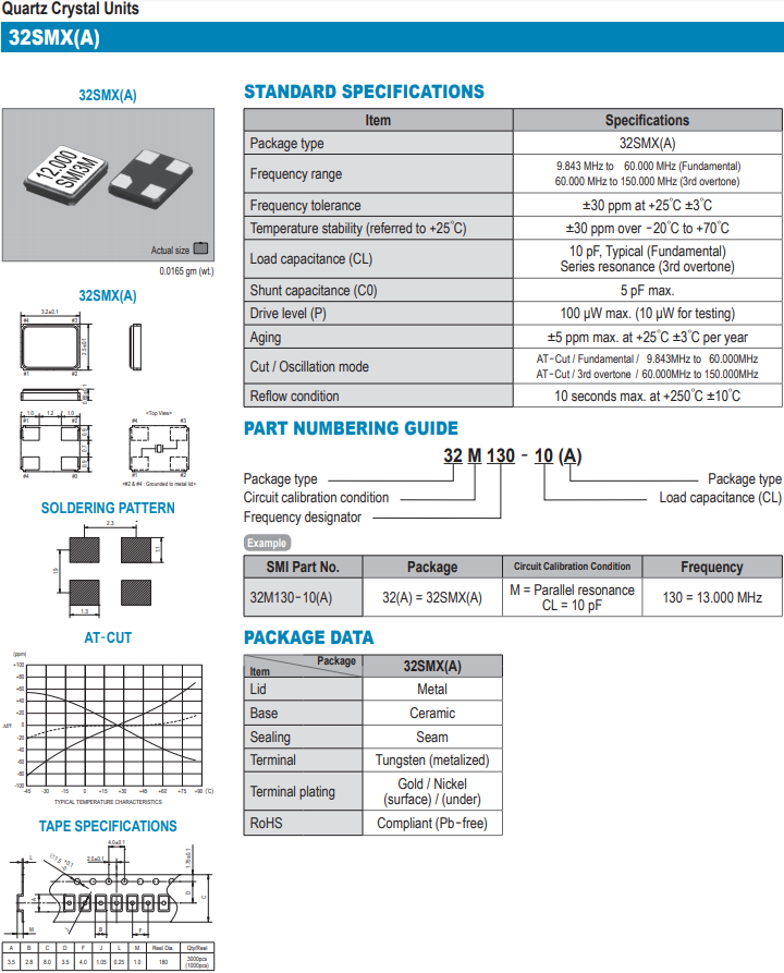 | SMI晶振 | 單位 | 32SMX(A)晶振 | 石英晶振基本條件 |